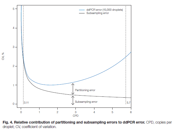 在分子生物学领域,数字PCR(dPCR)及其代表技术微滴式数字PCR(ddPCR)已成为核酸分子检测定量的重要工具。理解ddPCR的原理与局限,是科学、高效运用它的关键,本文将客观分析ddPCR的工作原理及其在实际应用中的局限性。 一、 ddPCR基本原理:从推算到计数 与实时荧光定量PCR(qPCR)不同,ddPCR采用了一种根本性的差异策略。qPCR通过监测PCR循环过程中的荧光信号变化,依赖标准曲线推算起始模板量,但其精度受制于扩增效率、标准品的准确性,且对抑制剂敏感,难以捕捉背景中极其微弱的信号。ddPCR本质上也是PCR技术,其相比于普通PCR有两个本质差异,正是这两个差异,使其能够实现绝对定量。而这两个本质的差异直接体现在检测工作流程上。 ddPCR的工作流程分为两个关键阶段: 微滴生成:分区反应 ddPCR通过微流控技术将反应体系(通常为20μL)分割成约20,000个纳升级的油包水微滴。每个微滴都作为独立的PCR反应单元,目标DNA分子按照泊松分布原理被随机分配至各个微滴中。一般情况下,如果起始模板量的拷贝数合适的话,大多数含有目标分子的微滴中仅包含单个分子。 终点检测:数字化计数 PCR扩增结束后,仪器对每个微滴进行荧光检测,根据预设阈值将其判定为阳性或阴性。通过统计阳性微滴的比例,结合泊松分布公式: 可直接计算出样本中目标核酸的绝对拷贝数浓度(copies/μL)。 简言之,ddPCR的本质是一个“核酸分子计数器”。它通过物理分割,将复杂的浓度测量问题,简化成了一个直观的计数统计问题,从而实现了无需标准曲线的绝对定量。 这种方法使ddPCR实现了无需标准曲线的绝对定量,从根本上改变了核酸定量的方式。 二、 ddPCR的主要应用领域 载体拷贝数(VCN)检测 在基因治疗领域,ddPCR可同时检测载体序列和单拷贝内参基因(如RNase P),精确计算每个细胞的平均载体拷贝数,为治疗安全性评估提供关键数据。 基因表达(GE)分析 虽然qPCR是基因表达分析的主流技术,但ddPCR在检测低丰度基因、微小表达差异或存在抑制剂的样本时表现更优,能提供更可靠的绝对定量结果。 拷贝数变异(CNV)分析 ddPCR通过比较目标区域与稳定参考区域的拷贝数比值,能够准确识别基因组的拷贝数变化,如区分二倍体、杂合缺失和扩增等状态。 稀有突变检测 在液体活检应用中,ddPCR能够检测到背景野生型DNA中占比极低(可达0.01%)的突变序列,适用于肿瘤的疗效监测和早期筛查。 三、 核心局限性:CPD范围的限制 ddPCR的数字化定量特性带来了一个固有的局限性——拷贝数每微滴(CPD)的有效范围限制。 CPD是指每个微滴中目标分子的平均数量,与检测的精密度直接相关。以QX200系统为例,要保证变异系数(CV)在2.5%以内的高精度检测,CPD的有效范围需控制在0.17到5.1之间。 图1:来源于 bio-rad Droplet digital PCR Applications Guide 这个范围对应的大约是3,000到100,000的总拷贝数检测范围。当CPD低于0.17时,阳性微滴数量过少,统计可靠性下降;当CPD超过5.1时,阳性微滴比例趋于饱和,系统无法准确区分不同浓度的样本。 这一限制在实际应用中意味着:对于高拷贝数的样本,必须通过预实验确定合适的稀释倍数,将样本浓度调整至有效检测范围内,否则无法获得准确数据。 |