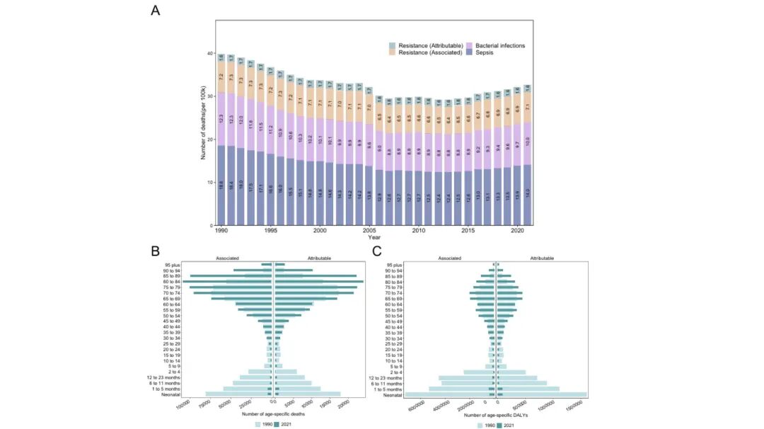 抗微生物药物耐药性(Antimicrobial resistance, AMR)已成为一项重大的全球公共卫生危机,对人类健康和社会发展造成严重威胁。据报道,2019年全球AMR直接导至127万人死亡,其中我国占14.5万。中国作为全球最大抗生素生产与消费国,虽建立许多耐药监测网络,但缺少对全国AMR疾病负担的动态评估,缺少根据年龄分层趋势、病原体-药物组合贡献及长期预测对AMR进行系统分析。