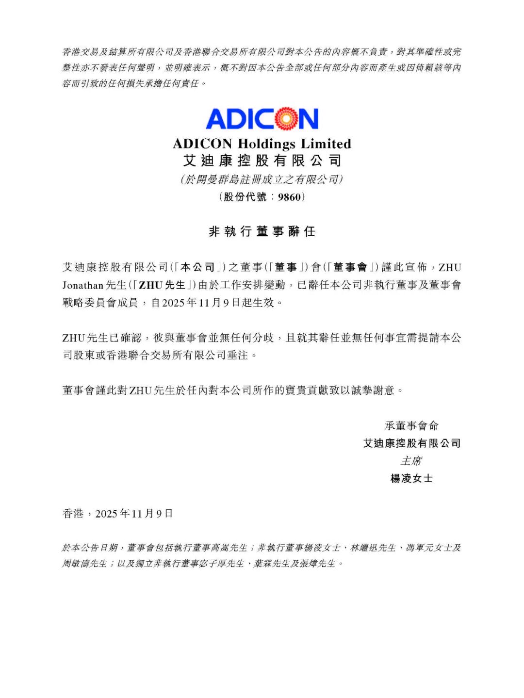 ZHU 先生已确认,彼与董事会并无任何分歧,且就其辞任并无任何事宜需提请本公司股东或香港联合交易所有限公司垂注。 董事会谨此对 ZHU 先生于任内对本公司所作的宝贵贡献致以诚挚谢意。 2025 年 8 月 22 日,ZHU Jonathan 先生获委任为非执行董事,负责向董事会提供专业意见及判断。 ZHU 先生,57 岁,于工业及医疗诊断行业拥有丰富经验。职业生涯早期,ZHU先生于 1992 年至 1996 年曾服役于美国空军。1996 年 6 月至 1998 年 9 月,担任Environmental Elements Corporation 之中国区总经理。其后于 2000 年 6 月至 2005 年6 月,在华盛顿特区 EOP Group, Inc. 担任资深游说专家,继而于 2005 年 6 月至 2010年 1 月出任堀场集团(东京证券交易所:6856)企业董事。2014 年 9 月至 2022 年 10月,作为海德思哲区域管理合伙人领导亚太区医疗保健及生命科学业务。自 2022 年11 月起,ZHU 先生出任 Korn Ferry (Sg) Pte Ltd 生命科学业务亚太区管理合伙人。 ZHU 先生现任 AdvaMed 资深顾问。过往顾问职务包括于 2019 年至 2025 年 7 月担任凯雷投资集团(纳斯达克:CG)资深顾问、2020 年至 2024 年担任深圳市海普瑞药业集团股份有限公司(深交所:002399,港交所:9989)主席顾问,以及 2013 年至2021 年担任康乐保(纳斯达克:COLO-B)亚洲咨询委员会成员。 ZHU 先生于 1992 年 5 月获得美国马里兰大学工程学士学位,2000 年 5 月获得美国巴尔的摩大学工商管理硕士学位,并于 2012 年获得中国政法大学法学硕士学位。 |