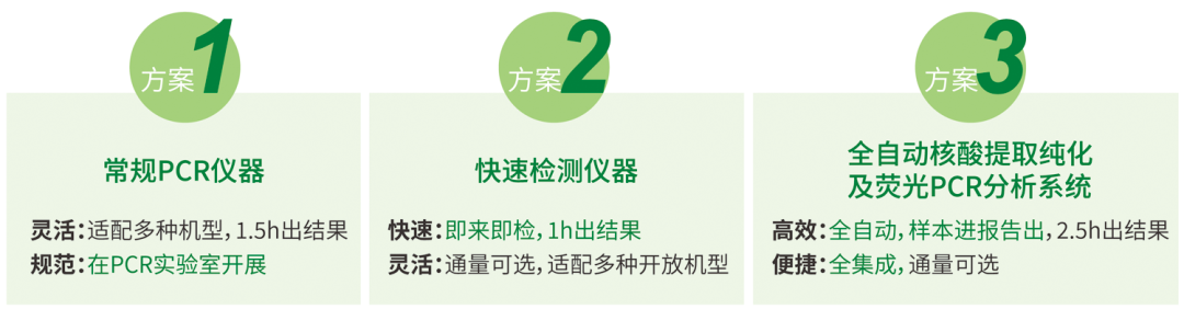 搭载常规PCR+快速检测+全自动一体机等多平台,满足不同用户需要。