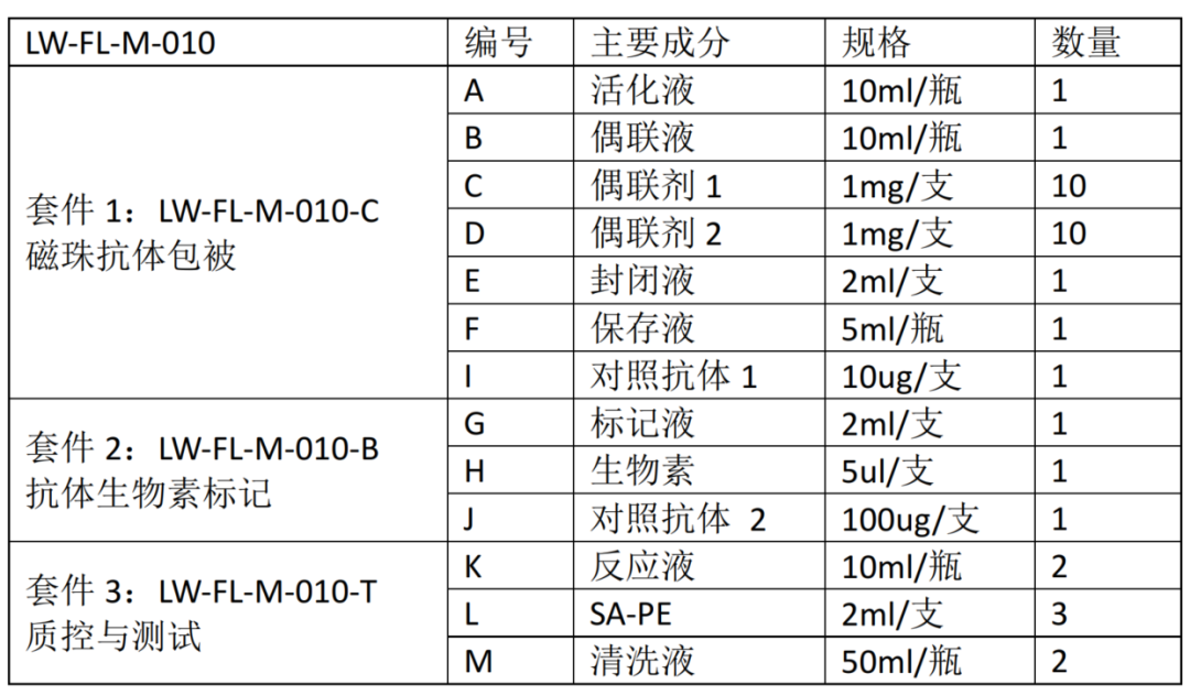 一、 它是什么?一款“开放式”的实验核心工具箱 想象一下,您只需要准备好您心仪的抗体,剩下的所有关键试剂——从磁珠编码、抗体包被、生物素标记到最终检测——我们都已为您精心优化和备齐。 “灵活多重”试剂盒正是一个这样的核心工具平台。它不是一个固定的检测Panel,而是一个强大的“骨架”,让您能轻松地将任何目标抗体“装配”上去,快速构建属于您自己的个性化流式多重检测方案。 核心价值:您的抗体 + 我们的平台 = 属于您的完美多重检测 二、 为什么选择它?三大优势解决您的核心痛点