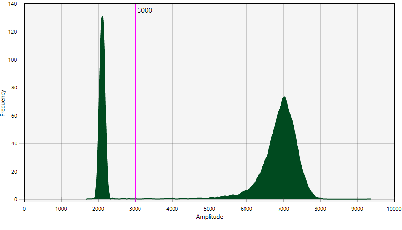 1D图中,将阈值置于阴性和阳性分布之间的“山谷”最低处。