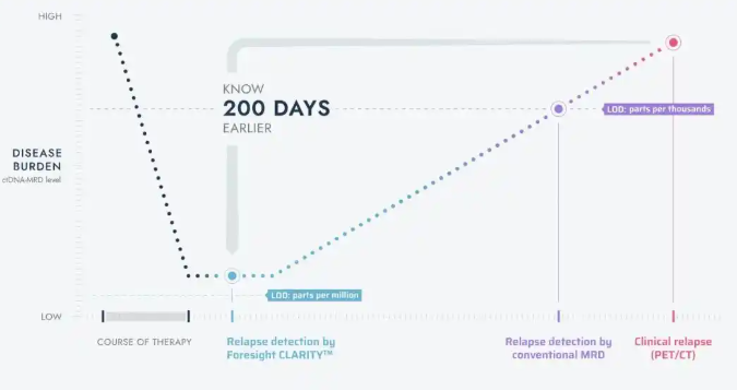 Foresight的核心技术PhasED-Seq,能够检测低至百万分之一水平的循环肿瘤DNA(ctDNA),灵敏度比传统方法高出100倍,可在影像学发现复发前平均提前200天预警。