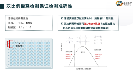 CBA双稀释比例双孔检测,避免hook效应导至的假阴性及弱阳性。