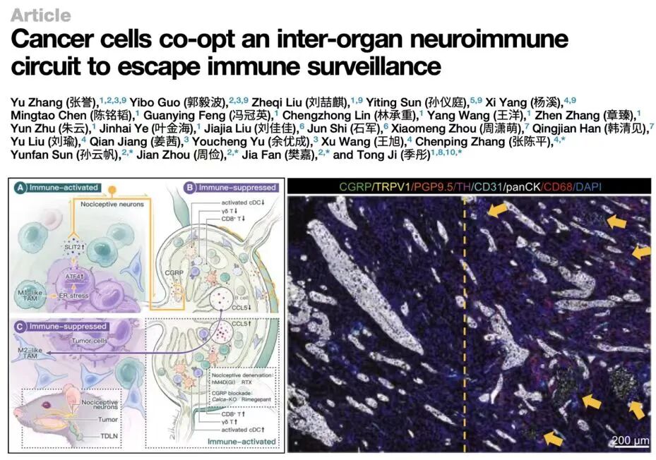 榕嘉生物自主研发Foresight® 空间组学平台。 大类上属于循环荧光染色,用DNA 标签代替了传统二抗;辅以杂交链式反应(HCR)做线性扩增,解决了国外主流DNA标签技术没有信号放大的缺陷;采用oligo 链洗脱条件温和,不会破坏样本,这也是目前淬灭和漂白技术的最大困扰。 目前每轮能测五标六色,理论无限轮,现已稳定做到12 轮,达到60标61色,国内技术最高水平。 艾克发生物,超多重空间蛋白组技术服务上新 引用艾克发AlphaXBio产品及服务的文章平均影响因子已达16+ 艾克发同时提供30色自主超多重空间蛋白组服务,以及与榕嘉生物的合作服务。 明虹天成,循环TSA及漂白迭代 基于循环TSA(Cyclic mTSA)以及漂白迭代技术,可高通量实现对常规临床石蜡切片的超多指标共标记(3-30靶标)。 爱博泰克,可切割荧光探针,25标26重 爱博泰克BioCanvas™ 超多重试剂,采用以可切割酪胺荧光探针 (CFP™) 为中心的多重策略,该策略允许染色、成像和荧光团切割的循环。 在每个循环中,多个蛋白质靶标首先被来自特异性的一抗识别。随后,用二抗和可裂解的荧光酪胺(CFT™)对第一个靶标进行荧光染色。HRP催化CFP与靶蛋白抗原上酪氨酸残基之间的偶联反应。成像后,荧光团以接近 100% 的效率,被特异性剪切试剂去除。通过重复染色循环,可以在单样本中,原位定量分析超多重靶蛋白。 每轮4个抗体,目前做到7轮,25标26重。 华大智造,24重多重荧光 传统的一抗+荧光二抗,温和洗脱,最大染色重数:24-plex。 茵菲空间多组学,以IMC为核心的空间多组学 迈维代谢,空间组学三次方 华盈生物,PCF与LCM-MS 华盈生物日前甄选了2025年发表的文章16篇,其中3篇有关空间蛋白组学。 华盈生物2025 —— 绘生命全景,解空间奥秘:以多维蛋白组学技术引领创新研究新范式! PCF空间单细胞蛋白组:复旦大学中山医院发表在《Cell》上的一篇文章,揭示了癌细胞通过ATF4-SLIT2-CGRP轴激活伤害感受神经元,远程重塑肿瘤引流淋巴结(TDLN)的免疫状态,从而逃避免疫监视的新机制,为联合神经调节和免疫治疗提供了理论基础。 PCF空间单细胞蛋白组,助力研究者发现了众多免疫细胞中,只有肿瘤相关巨噬细胞(TAM)和伤害感受神经元具有显著的共定位关系,为揭示“TAM激活伤害感受神经元”的机制假说提供了直接的空间原位证据。 中国医学科学院肿瘤医院在《Signal Transduct Target Ther》上发表题目为《Characterization of the extrinsic and intrinsic signatures and therapeutic vulnerability of small cell lung cancers》的文章,全面描绘了小细胞肺癌(SCLC)的单细胞和空间图谱,系统解析了SCLC的肿瘤微环境组成和癌细胞异质性,并首次报道了FAK剪接变体可作为SCLC的预后标志物和治疗靶点。 PCF空间单细胞蛋白组检测服务,助力研究者揭示了肿瘤组织和癌旁组织显著差异的免疫微环境特征,并发现了对免疫治疗反应不同的患者中,肿瘤细胞上抗原呈递分子MHC表达的显著异质性,为理解SCLC免疫逃逸机制提供了新视角。 LCM-MS空间蛋白组:长征医院在《Cell》上发表题为《An iPSC-derived CD19/BCMA CAR-NK therapy in a patient with systemic sclerosis》的文章,该研究设计并开发了iPSC来源的CD19/BCMA双靶点的CAR-NK细胞产品QN-139b,并成功应用在一例难治性硬皮病患者中,为重症自身免疫病提供了变革性治疗方案。 LCM-MS空间蛋白组发现了CAR-NK灌输后,在患者皮肤的基底层、汗腺层、上皮层和真皮胶原层中不同的生物学通路被激活,揭示了QN-139b通过双靶点清除致病B细胞,可以重塑免疫稳态和逆转组织纤维化。