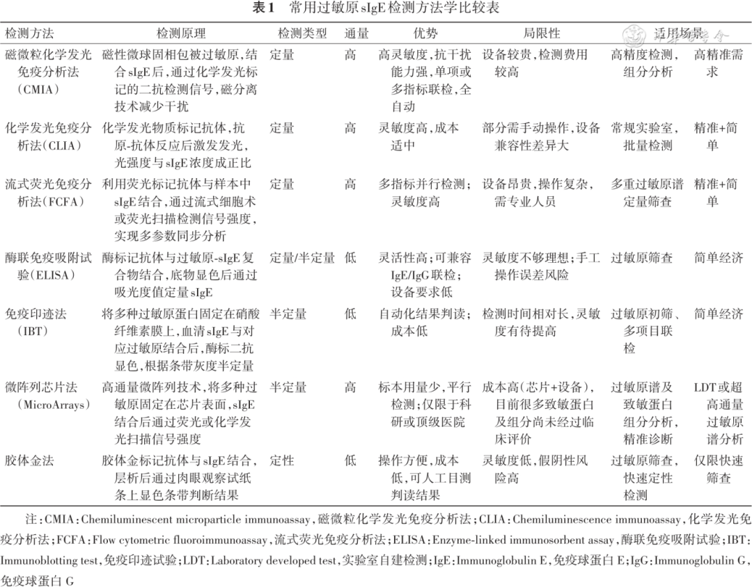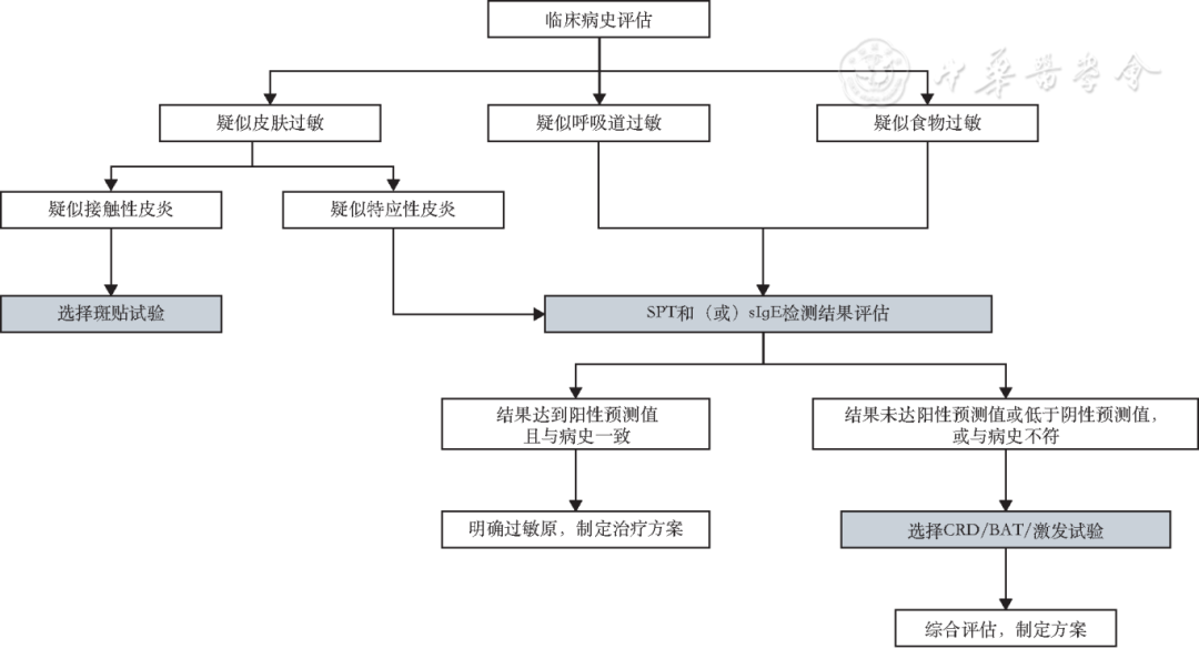 作者:中华预防医学会过敏病预防与控制专委会 文章来源:2025, 59(12): 2001-2020. DOI: 10.3760/cma.j.cn112150-20250509-00407. 过敏性疾病的患病率在中国及全球范围持续上升,已经成为日益严重的公共卫生问题之一。本共识由中华预防医学会过敏病预防与控制专业委员会制订,参考国际的过敏病指南及我国的相关研究,系统阐述过敏原检测的原则与方法,旨在规范检测流程,提升早期诊断与精准治疗水平。结合我国不同地区的气候、过敏原分布及患者特征,提出区域化检测推荐,推动过敏性疾病管理标准化。本共识涵盖传统检测方法,如过敏原皮肤点刺试验、血清特异性IgE(sIgE)检测与新兴分子检测技术,突出我国特色的针对性策略,与国际标准衔接并体现区域创新,为临床实践提供科学指导。 过敏性疾病的全球患病率持续上升,已成为影响人群健康和社会经济的重要公共卫生问题。在我国,工业化、城市化及环境变化加剧了过敏性疾病的流行。研究显示,我国20岁及以上成人的哮喘患病率为4.2% [ 1 ] 。在儿童人群中,哮喘患病率在1990年至2010年间增长近150%(从1.09%增至3.02%) [ 2 ] 。此外,过敏性鼻炎患病率也呈上升趋势 [ 3 ] 。这些疾病共同对患者生活质量、医疗资源及社会经济构成了沉重负担。在此背景下,精准诊断与个体化治疗成为亟待解决的医学难题。 过敏性疾病的诊断关键在于全面的临床评估,过敏原检测作为实验室诊断的核心环节,能够明确致敏物质、评估致敏程度并为治疗方案的制定提供关键依据。随着技术进步,其在临床精准诊疗中的应用价值日益凸显。然而,过敏原的多样性、交叉反应现象以及检测方法的持续演进,也为结果解读与临床决策带来了诸多挑战。近年来,检测技术从皮肤点刺试验(skin prick test,SPT)和血清特异性IgE(specific immunoglobulin E,sIgE)检测发展至过敏原组分解析诊断(component-resolved diagnostics,CRD),并引入人工智能(artificial intelligence,AI)与大数据分析,提升了检测技术的智能化和精准性。 我国过敏原检测具有独特挑战,地域辽阔导至过敏原分布差异显著:南方湿热地区以屋尘螨/粉尘螨和霉菌过敏为主 [ 5 ] ,北方干燥地区花粉过敏更普遍 [ 6 ] 。因此,诊断需结合患者临床表现、病史、环境暴露史及区域流行病学特点,制定个体化策略。 本专家组曾于2020年出版《China Consensus Document on Allergy Diagnostics》为临床诊断提供了重要指导 [ 4 ] 。为应对领域进展并规范临床实践,本次更新版共识旨在为临床医生、研究人员及检测人员提供一套科学、规范的检测与应用策略。共识细化了方法选择、结果解读与质量控制,并特别强调结合我国过敏原谱特征,提出“因地制宜”的检测推荐,以增强其临床实用性与推广价值。 本共识严格遵循《中国制订/修订临床诊疗指南的指导原则》 [ 7 ] 及国际共识制定标准,采用改良德尔菲法进行多轮专家论证。具体形成方法包括:(1)成立多学科核心专家组,涵盖变态反应学、呼吸病学、儿科学、耳鼻喉科学、皮肤病学及检验医学等领域的权威专家;(2)系统检索近年来国内外权威数据库(如美国PubMed、中国CNKI等)相关文献,检索时间范围为2014年1月至2024年12月,结合我国最新的过敏原流行病学监测数据建立证据体系;(3)基于证据体系,由核心专家组起草了包括检测方法选择、临床应用、质量控制等在内的核心推荐意见,并通过线上匿名投票和多次线下共识讨论会议,对所有推荐意见进行多轮论证与修订,并依据证据等级和专家认同度明确其推荐强度(强推荐/弱推荐)。本共识已在国际实践指南注册平台(注册号:PREPARE-2025CN317)完成专家共识注册,确保共识建议的规范性和学术独立性。最终文本经全体编写组成员交叉审校,并由外审组进行审议,最后由中华预防医学会过敏病预防与控制专委会单位审核批准后发布。 过敏原检测在过敏性疾病的诊断与治疗中具有不可或缺的核心地位。科学、规范的过敏原检测不仅能够帮助临床医生明确患者的致敏物质,还能为个体化治疗方案的制定提供重要依据。为确保检测结果的准确性与实用性,必须遵循一系列基本原则:①个体化诊断原则:基于患者的临床症状、病史及家族史,结合过敏反应的类型和严重性,选择适合的检测方法。②科学依据与标准化操作原则:检测方法需依托循证医学证据及国际标准,严格遵循标准操作规程。③多维度数据分析原则:结合病史、症状及环境因素综合解读检测结果。 过敏原检测是过敏性疾病诊断的关键步骤,常用方法可分为体内试验和体外试验两大类。体内试验主要包括SPT、过敏原激发试验(allergen provocation test,APT)和斑贴试验;体外试验则主要包括血清sIgE和嗜碱性粒细胞活化试验(basophil activation test,BAT)。 (一)体内检测 1.过敏原SPT SPT是目前临床上最常用的体内过敏原检测方法,用于评估机体是否存在IgE介导的速发型超敏反应。操作快速且简单,适用于多种常见过敏原的筛查与诊断,包括屋尘螨/粉尘螨、花粉、霉菌、宠物皮屑等吸入性过敏原,以及牛奶、鸡蛋、花生、坚果等常见食物过敏原。 并非所有人适合SPT,对于患有严重皮肤病的患者,体外检测可能是更适合的选择 [ 10 ] 。孕妇、婴幼儿、哮喘急性发作期患者应慎重评估。处于严重过敏反应发作期或有相关休克病史者原则上避免SPT,若确有必要,须在具备完善监护与抢救条件的医疗环境中,由经验丰富的团队全程监护