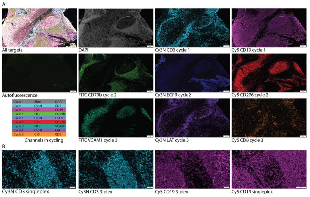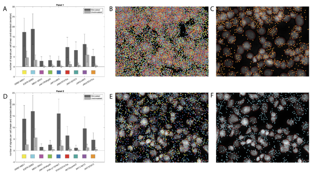 前言 无需破碎细胞,一次实验就能看清九种蛋白质的实时动态。 在癌症这个复杂的疾病中,蛋白质很少单打独斗,它们的功能和活性往往通过与其他分子的相互作用和化学修饰来决定。 传统方法通常只能告诉我们某个蛋白质“在哪里”,或者“有多少”,却很难揭示它在“做什么”——是处于激活状态,还是与谁在“密谋”推动肿瘤生长。 “多重原位邻近连接检测(Multiplex in situ proximity ligation assay, misPLA)” 就像一个安装在细胞内部的超高清多功能摄像头,能够同时捕捉多达九种蛋白质的动态活动,而且是在不破坏细胞和组织结构的前提下。 01 技术突破:从“静态照片”到“动态直播” 空间蛋白质组学已经能描绘蛋白质在细胞和组织中的分布图,但这就像一张静态照片,信息有限。了解蛋白质的 “功能状态” 才能揭示细胞决策、命运决定和组织功能的深层机制。 发表在 bioRxiv 上的这项研究,展示了一种创新的检测方法——多重原位邻近连接检测。 它的核心原理是:一种特殊的 “抗体-寡核苷酸”探针。每种抗体负责识别并结合一个特定的蛋白质靶点,而它身上携带的寡核苷酸则像一串独特的“条形码”。当两个靶点蛋白在空间上足够接近时,它们各自的抗体探针也会靠拢,两段寡核苷酸可以连接起来形成一个环状的DNA模板。通过滚环扩增技术,这个小小的DNA环能被放大成上百万份拷贝,形成一团在显微镜下清晰可见的荧光信号点。最关键的一步在于多重检测。通过设计多组不同“条形码”的抗体探针,并在实验中分批次用不同颜色的荧光来显示这些条形码的扩增产物,研究人员能在一次实验中,顺序检测多达九对蛋白质的相互作用或修饰状态。 02 实战检验:从细胞到组织,从基础到临床 理论很美好,实际效果如何?研究人员在多个层面进行了验证。 在培养的SK-BR-3细胞中,他们用EGF(表皮生长因子)刺激细胞,模拟癌症中常见的信号通路激活。利用misPLA,他们成功同时可视化了STAT5a、STAT3、AKT、ERK和EGFR等关键信号蛋白的磷酸化状态变化。在未刺激的细胞中,这些信号微弱;而一旦受到EGF刺激,代表蛋白质激活的荧光信号点便大量出现,清晰地展示了信号通路的即时启动。 不仅如此,他们还检测了包括 MEK1-ERK2、EGFR-GRB2、STAT3-STAT5a 在内的九对蛋白质相互作用。结果同样表明,EGF刺激显著增强了这些蛋白质“搭档”之间的空间邻近性,生动描绘了信号从膜受体向下游传递的连锁反应。 这项技术不仅适用于培养细胞,更能直接应用于临床组织样本——福尔马林固定石蜡包埋组织样本。研究人员分析了三种经典霍奇金淋巴瘤亚型和一个胸腺瘤样本。通过检测九对信号蛋白的相互作用,他们为每种样本绘制了独特的信号通路“指纹”。 例如,在侵袭性较强的混合细胞型和淋巴细胞消减型淋巴瘤中,EGFR-GRB2和 GRB2-MEK1 的信号密集,表明MAPK信号通路被强烈驱动。而在淋巴细胞为主型样本中,EGFR-GRB2信号很弱,但GRB2-MEK1仍可检测到,提示其MAPK信号输入可能被“截断”,这与该亚型较低的增殖驱动特性相符。这些发现说明,misPLA能够区分组织学上相似但分子机制不同的肿瘤,为预后判断和靶向治疗选择提供了宝贵的分子背景信息。 03 更广阔的应用:描绘免疫微环境与指导精准治疗 技术的潜力远不止于此。研究团队还应用了一个九重免疫谱系/粘附分子检测组合,在扁桃体样本中同时绘制了 CD3、CD8、CD19、CD79b、EGFR 等多种标志物的空间分布。结果清晰地区分出富含T细胞的副皮质区、B细胞聚集的滤泡区、生发中心等结构,展示了免疫细胞在组织中的精确定位和空间关系。与单一检测相比,多重检测并未牺牲灵敏度或特异性,证明了其在高丰度蛋白检测中的可靠性。 在慢性粒细胞白血病(CML)患者血液样本的分析中,misPLA揭示了患者间和细胞间的异质性。通过分析AKT、JAK/STAT和MAPK等通路,他们发现两名患者的信号激活模式既有相似之处,也存在差异。例如,一名患者表现出更广泛的跨通路激活,而另一名则更集中于特定通路。更精细的分析显示,在大多数癌细胞中,STAT5信号占主导,而活化的STAT3仅在一小部分细胞中富集,这种细胞间的异质性可能影响患者对不同治疗药物的反应。这表明,通过在原位检测恶性细胞的信号通路扰动,misPLA有望帮助医生为个体患者选择最优的治疗方案,甚至在短期药物孵育后预测疗效,真正迈向精准医疗。 04 未来展望:功能蛋白组学的常规利器 近十年来,空间组学技术蓬勃发展,但大多数技术仍停留在“谁在哪里”的描述层面。misPLA的出现填补了“正在发生什么”这一功能层面的空白。当然,技术仍有局限:每轮检测的荧光颜色数量有限、结果证明的是空间邻近而非直接物理接触、定量分析需要校准标准等。但无论如何,misPLA已经确立为一种实用、可扩展的技术平台,为所有需要空间背景和功能性解读的生物学问题提供了强大工具。随着探针库的扩展和图像分析流程的成熟,它有望成为功能原位蛋白质组学的常规利器,从基础细胞生物学到生物标志物发现,再到精准病理学,深刻改变我们对细胞和组织的理解。 探秘微观,引领生命科技前沿!精准偶联,开启分子操作新时代;超敏检测,赋能临床检验新应用!杭州乐为生医科技有限公司,精心打造多款科研利器: