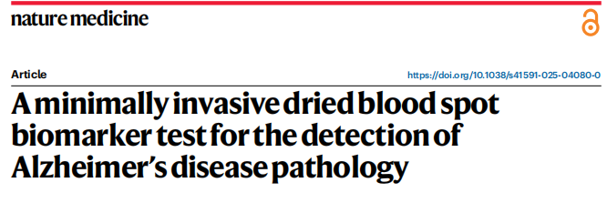 Nature medicine! 指尖血干血点进行AD标志物检测的评估