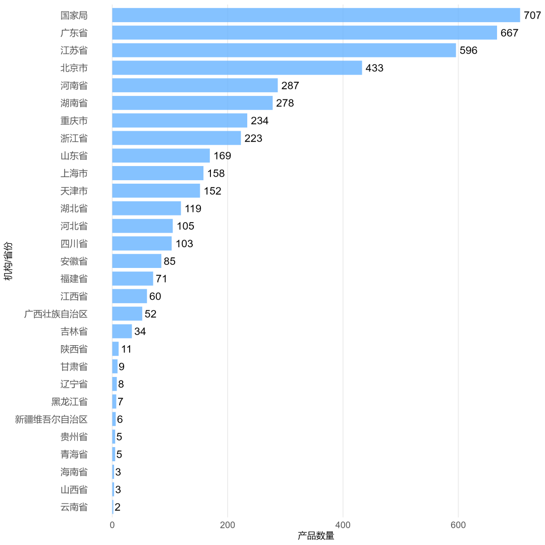 批证单位看,广东省、江苏省、北京市等2025年批准产品数量较多。(图4)
