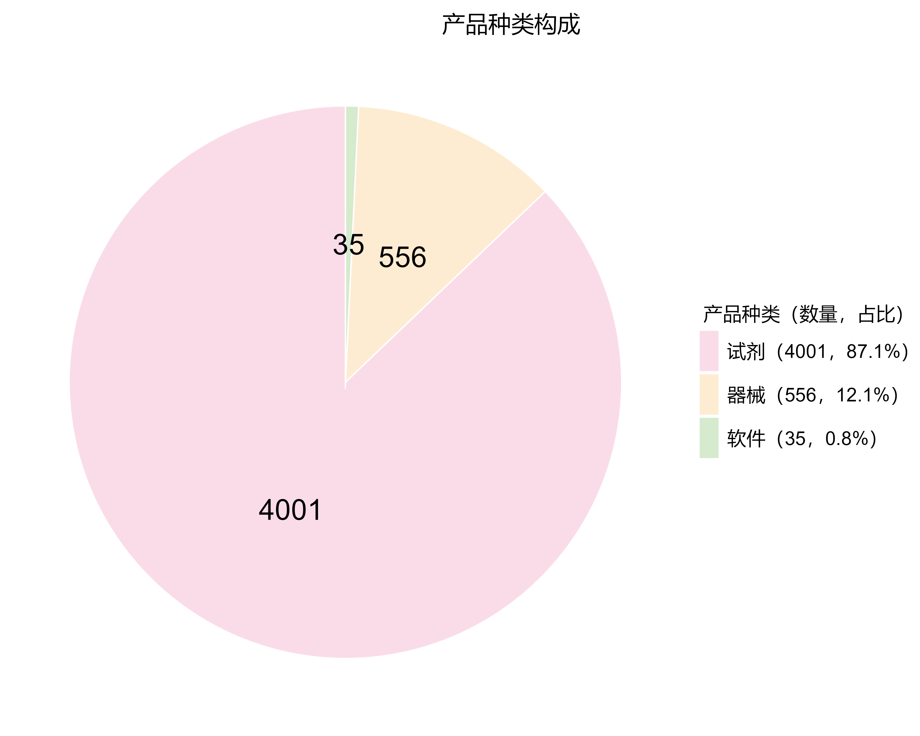 产品类型细分,IVD试剂4001款,器械556款,体外诊断软件35款。(图2)