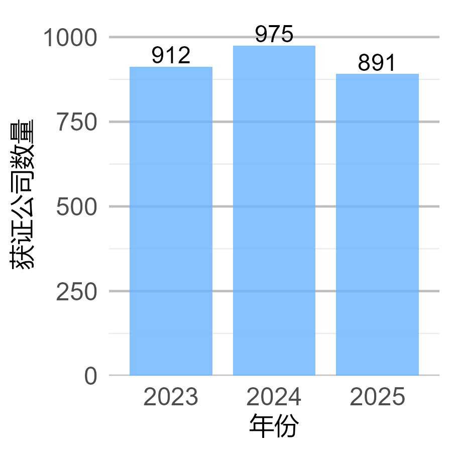 图8 2023-2025年获证公司数量变化