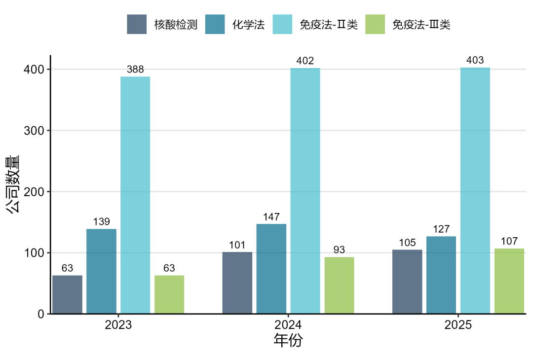 图11 2023-2025年不同检测方法学下获证公司数量
