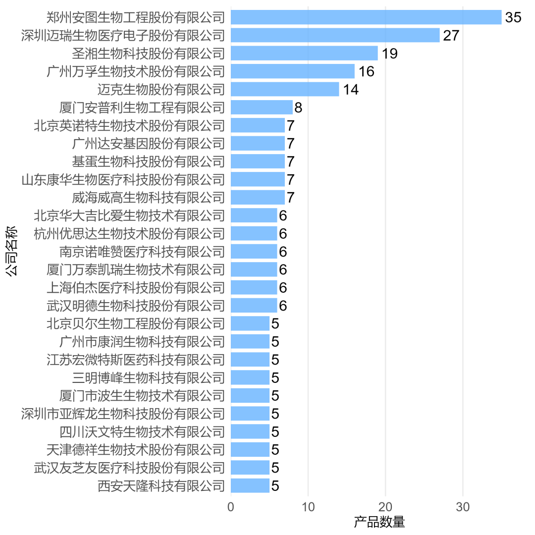 因此,2025年,我国分子诊断领域竞争持续加速。新冠疫情催生企业相关研发投入增加、叠加审批滞后效应,引发病原体检测产品数量的快速增长。