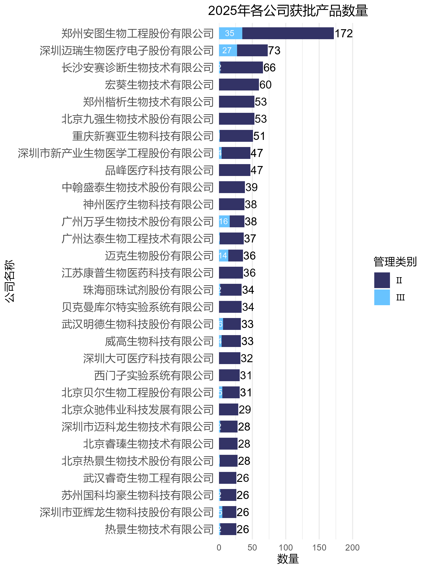 图9 2025年部分公司Ⅱ、Ⅲ类产品获证数量