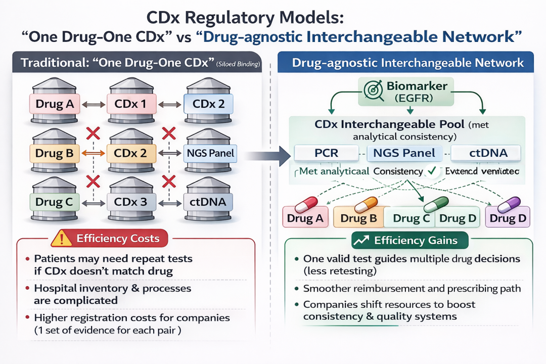 • 创新被迫走低效注册路径:每来一款同类药,可能都要推动“对应 CDx 的变更/补充证据”,把资源消耗在重复的桥接工作上。