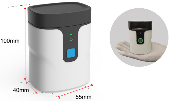 如图 1,手持式仪器尺寸为 55  × 40  × 100 mm (长 × 宽 × 高)。