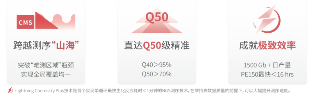 近期,全球基因测序市场迎来多款高通量测序产品的发布与技术路线图更新。01真迈生物(Genemind):推出全局无偏倚Q50创新测序化学CMS技术、CMS试剂盒产品CMS (Cross Mountains and Seas) 是真迈生物推出的创新测序化学技术。该技术依托新型聚合酶突变等创新技术,显著提升基因组难测区域测序能力,优化全基因组测序覆盖均一性,实现全局无偏倚Q50级(99.999%)精度数据输出。 SURFSeq 5000 CMS测序试剂盒V1.0系列产品,集CMS和Lightning Chemistry Plus两大技术于一体,实现极致覆盖:突破“难测区域”瓶颈,全局覆盖均一;极致准确:Q40>95%,Q50>70%;极致效率:1500Gb+日产量,PE150最快<16hrs。CMS技术对于超低频突变、片段丰度定量检测及基因组困难区域覆盖能力突出,可重点赋能肿瘤早筛早诊、复发监测、移植术后排斥监测、罕见病诊断和免疫组库研究等临床和科研领域。