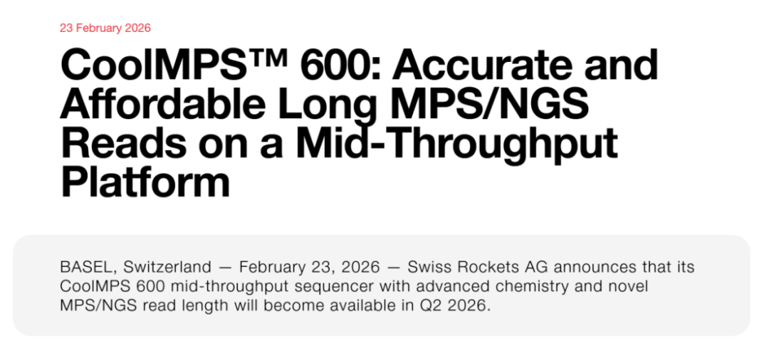 Swiss Rockets:计划于推出CoolMPS 600基因测序仪