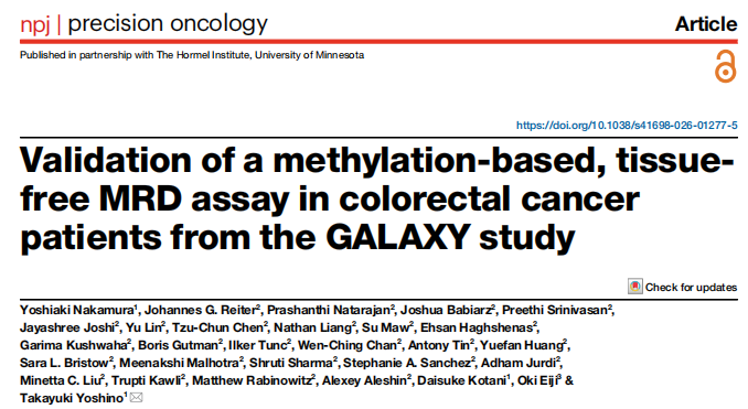 摘要: 在本研究中所采用的无组织检测的微小残留病(MRD)分析方法是通过利用下一代测序技术,针对一系列癌症特有 DNA 甲基化标志物来检测循环肿瘤 DNA(ctDNA),用于检测结直肠癌(CRC)中的分子残留病灶(MRD)。 ...