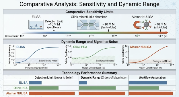 传统的 ELISA 虽然是金标准,但灵敏度受限;Olink 的 PEA 技术通过核酸扩增解决了通量问题,却在超低丰度检测时难以绕开背景噪音的困扰。