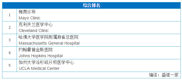 今晨,《美国新闻与世界报道》(U.S News &World Report)公布了2016-2017美国最佳医院综合排行榜,16项专科排名也同时出炉。以下是具体排名榜单: