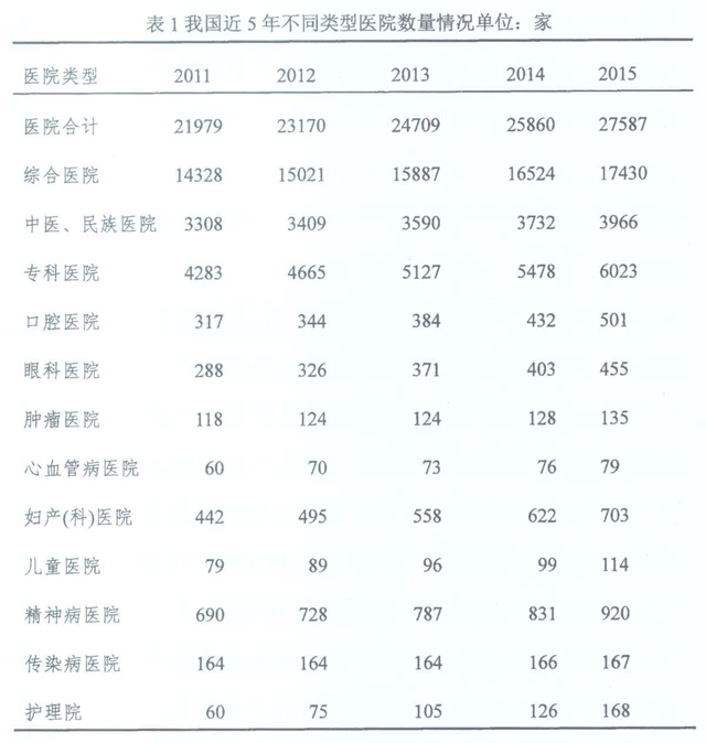 截至2015年,我国共有医院27587家,其中专科医院6023家,占比21.08%。