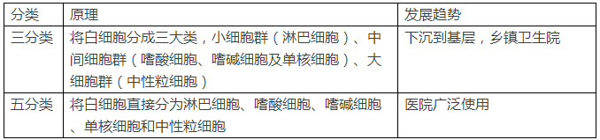 血细胞计数产品由血细胞分析仪、试剂、校准品和质控品组成。血细胞分析仪又叫血液细胞分析仪、血球仪器、血球计数仪等,是亿元临床检验应用非常广泛的仪器之一。 血球分析仪通过电阻法对血液中的白细胞,红细胞,血小板进行分类,可以得到血红蛋白浓度,红细胞压积,各细胞组分的比例等与血液有关的数据。 20世纪60年代,血球计数是通过人工染色和计数实现的,操作复杂,效率低下,检测精度差,分析参数少,对从业人员要求高,种种劣势限制其在临床检验领域的应用。 1958年库尔特采用电阻率与电子技术相结合的方法,研制出操作简便的血球计数仪。 3.2 分类 根据血球检测参数的不同分类