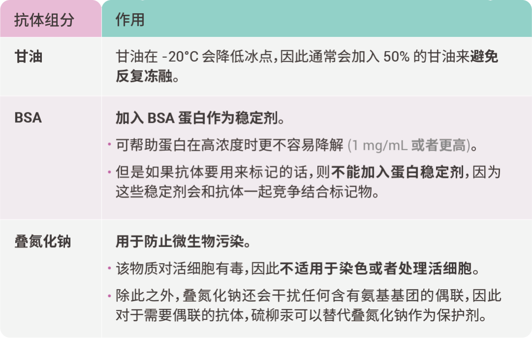 抗体储存的“保存期限”长短不一,从数周到数年都有可能,这主要受抗体自身特性的影响。抗体保存期限也受到储存条件,如温度、缓冲液成分等制约。因此:
