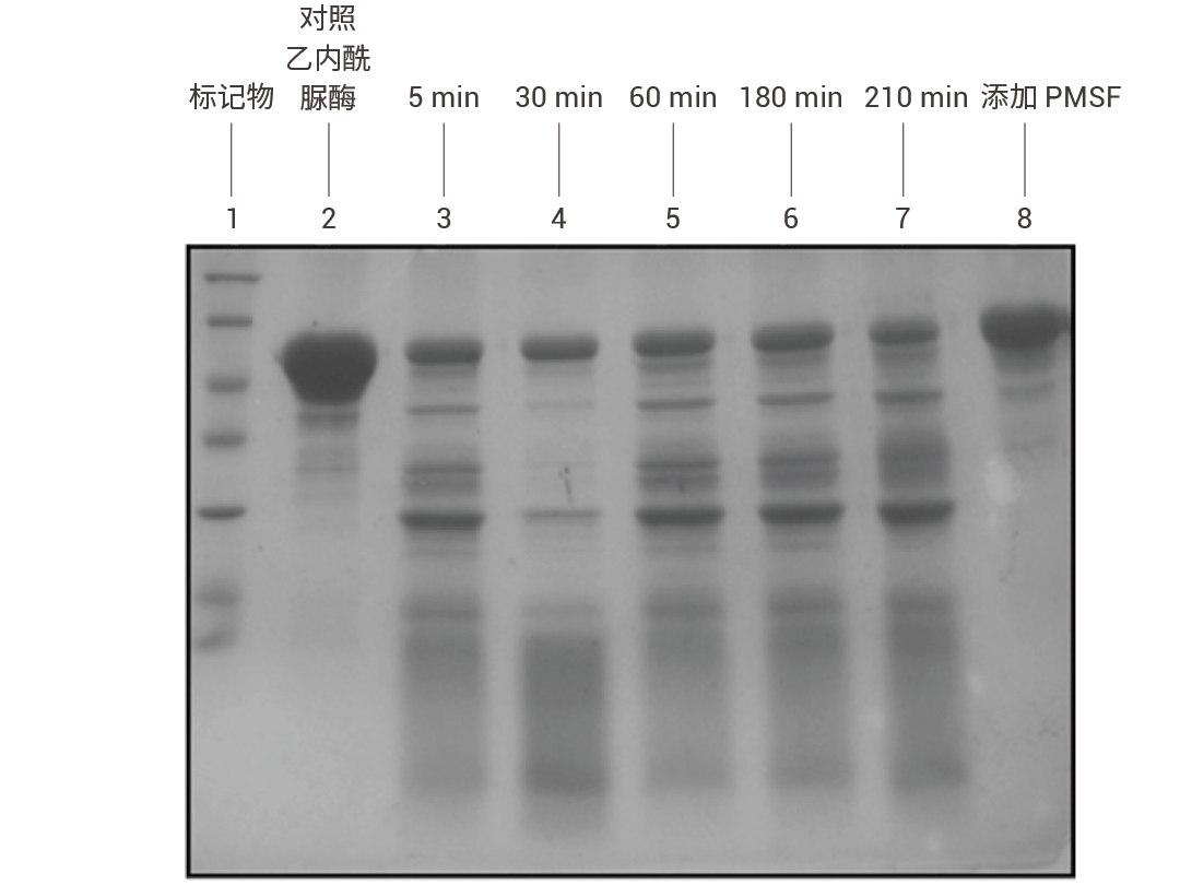使用枯草杆菌蛋白酶 Carlsberg (Subtilisin Carlsberg,SC) 对溶菌酶进行蛋白水解,然后立即添加溶解在二甲基亚砜 (DMSO) 中的 2 mM PMSF 来淬灭反应。